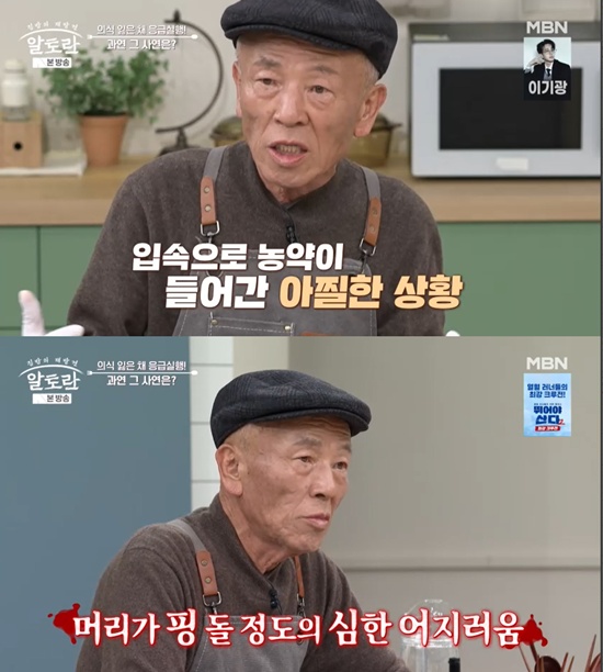 임현식은 지난 23일 방송된 MBN ‘알토란’에 출연해 “집에 사과나무가 20그루 있다. 제초 작업을 하다 농약을 먹었다”고 설명했다. 이어 “재채기가 나고 머리가 핑 돌 정도로 어지러웠다. 이상해서 구급차를 불렀고 정신을 잃고 쓰러져 응급실에 갔다”고 아찔했던 사고 당시를 떠올렸다.