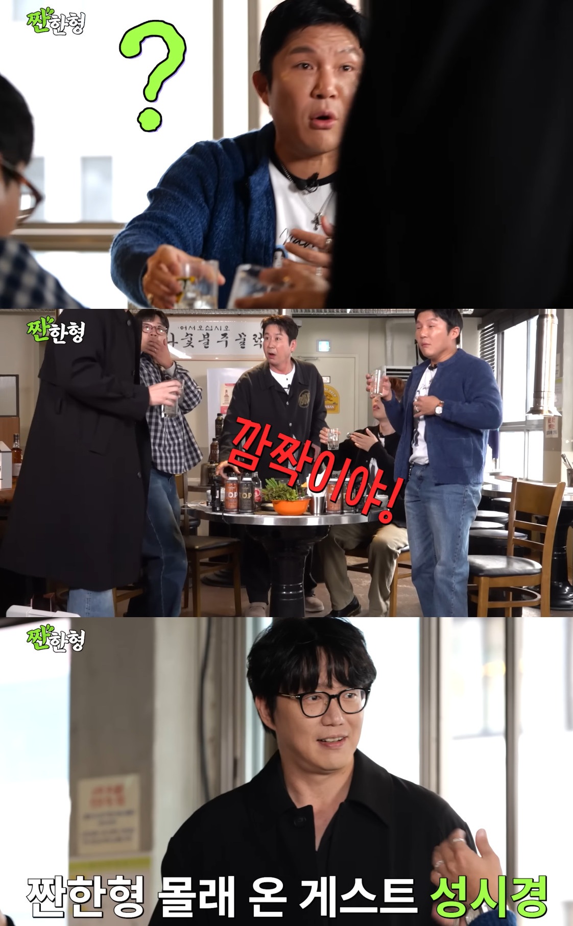신동엽은 "어제 행사 MC를 봤는데 마지막 가수 순서로 시경이가 나왔다. 끝나고 여럿이서 술 마시는데 이거 '짠한형' 찍는다고 말했다"며 성시경은 당시 '짠한형' 초대에 미적지근한 반응을 보여 진짜로 올 줄 몰랐다고 고백했다.