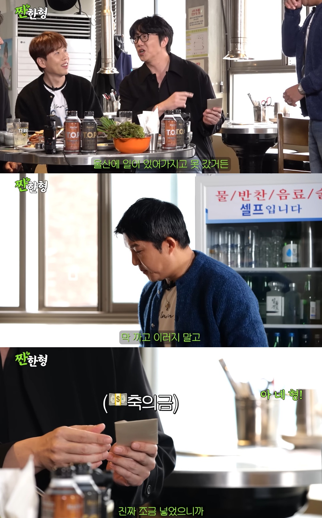 성시경은 "결혼 축하한다"며 "결혼식 때 내가 울산에 일이 있어서 못 갔다. (금액을) 까고 이러지는 마라, 진짜 조금 넣었다"고 밝혀 모두에게 감동을 안겼다.
