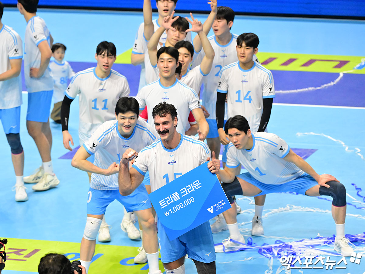 이날 경기에서 트리플크라운을 달성한 대한항공 러셀이 포즈를 취하고 있다.