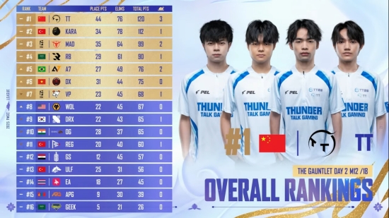 (엑스포츠뉴스 이정범 기자) '2025 PMGC' TT가 The Gauntlet 2일 차에도 1위를 차지했다.