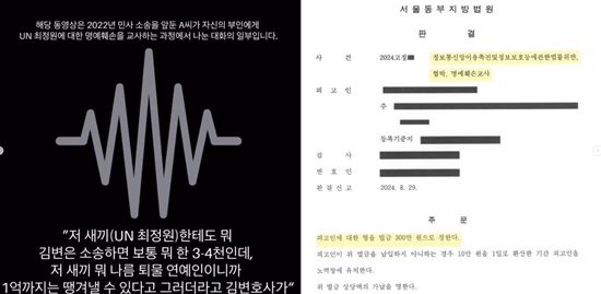 (엑스포츠뉴스 명희숙 기자) 그룹 UN 출신 배우 최정원이 상간 소송 1심 판결문 공개 및 A씨의 녹취록을 공개하며 정면 대응에 나섰다.