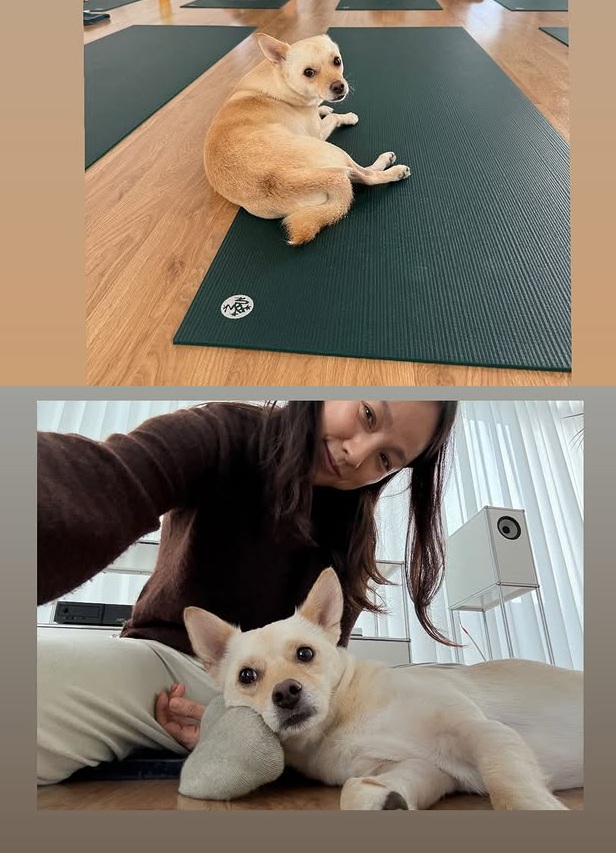 공개된 사진 속에는 이효리의 요가원에 수강생의 반려견도 함께하고 있어 눈길을 끈다. 요가매트 위에 앉아 얌전히 수업에 함께하는 반려견이 귀여움을 자아낸다.