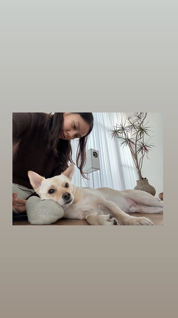 또한 반려견은 이효리의 발을 베고 누워 눈길을 끈다. 여유로운 표정으로 이효리 곁에 누워 주변을 둘러보는 반려견과, 반려견과 셀카를 찍으며 미소를 짓는 이효리가 시선을 사로잡는다.