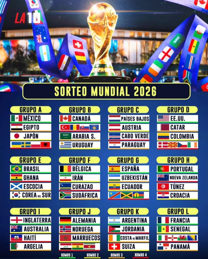 축구 관련 콘텐츠를 제작하는 'LA10'은 27일(한국시간) "우리는 모든 파라미터를 고려해 월드컵 가상 조 추첨을 진행했다"며 자신들이 직접 시도한 가상 조 추첨 결과를 공개했다.