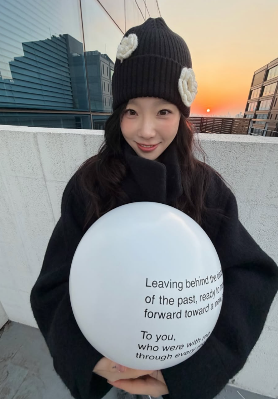 사진 속 태연은 석양이 지는 옥상에서 풍선을 들고 다양한 포즈를 취하고 있다. 태연 특유의 청순하면서도 사랑스러운 분위기가 고스란히 드러난다.