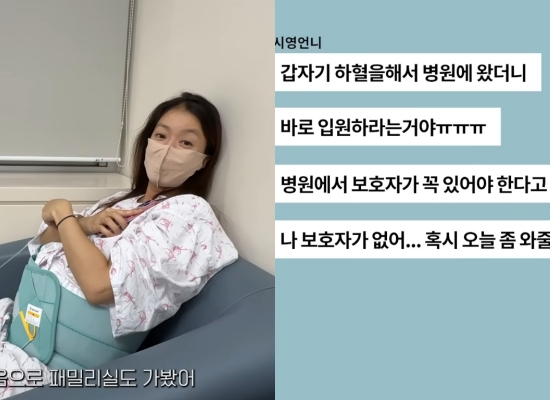 영상 속 이시영은 지인에게 갑작스럽게 병원에 입원했다는 메시지를 보냈다. 그는 "갑자기 하혈을 해서 병원에 왔더니 바로 입원하라고 한다. 병원에서 보호자가 있어야 한다는데 내가 보호자가 없다. 혹시 오늘 와줄 수 있어?"라고 도움을 요청했다.