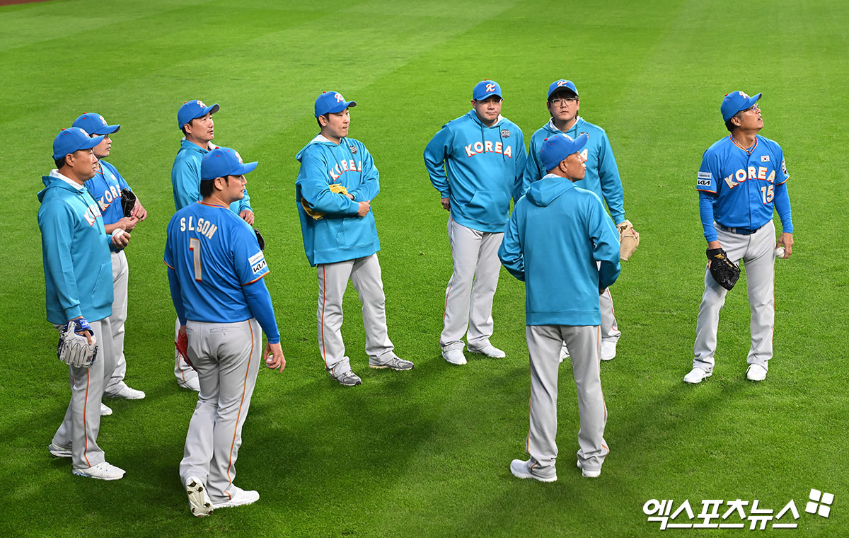 (엑스포츠뉴스 사진영상팀) 29일 일본 에스콘필드 홋카이도에서 열리는 한일 야구 레전드 선수 간 친선 경기 ‘한일 드림 플레이어즈 게임’을 앞두고 한국 투수조 선수들이 훈련에 임하고 있다.