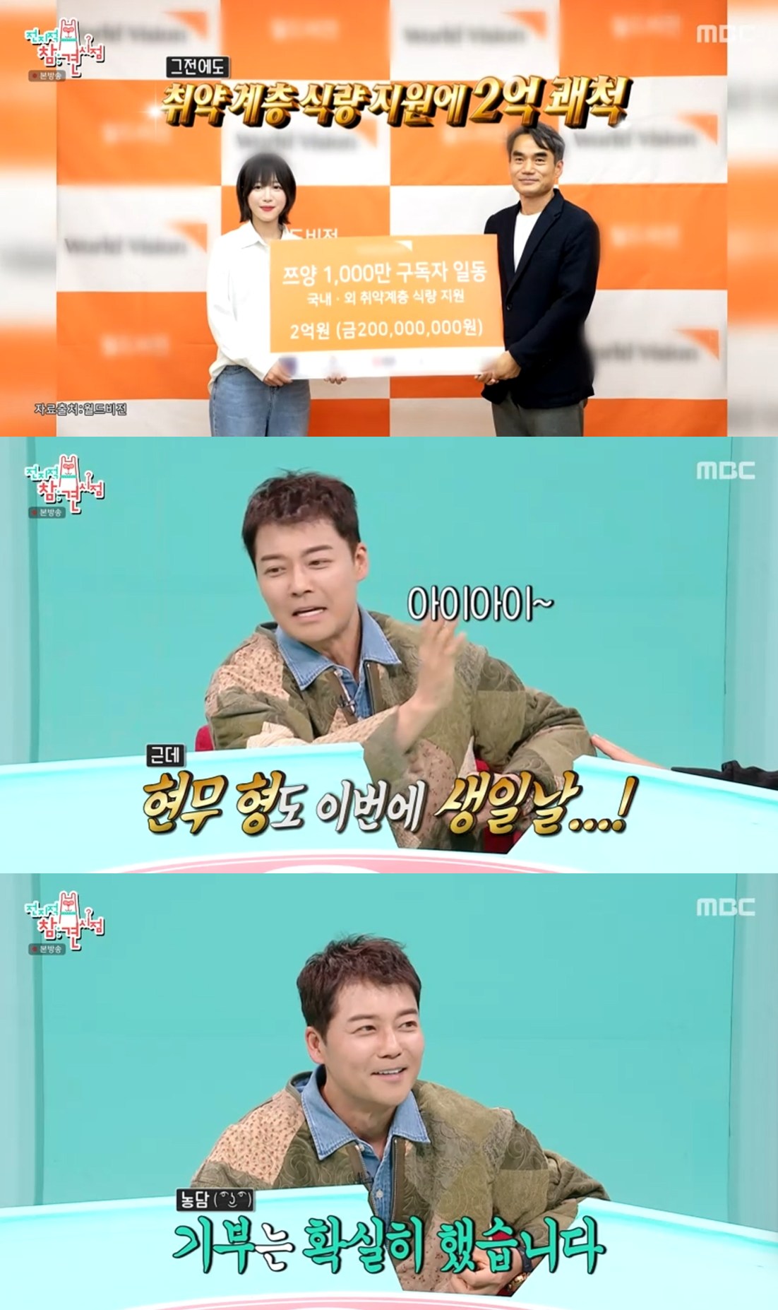 이를 듣던 양세형은 "전현무 형도 생일날 본인 이름으로 1억을 기부했다"며 전현무의 미담을 전했다.