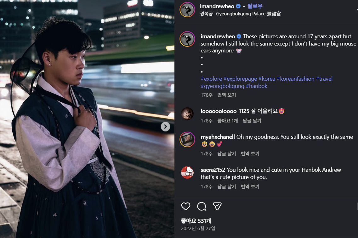 이날 앤드류 허는 결승전을 앞두고 대한민국 축구스타 손흥민의 '찰칵 세리머니'를 한 뒤 출발선에 서 눈길을 끌었다.