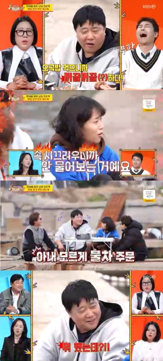 양준혁은 김치 타령에 이어 "조금 싱겁기도 하고 오곡밥 먹으니까 꺼끌꺼끌하다", "콩나물국도 심심하다"고 반찬 투정을 했다.