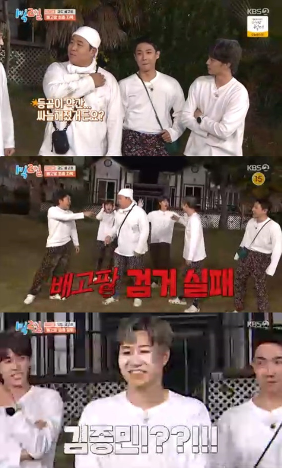 30일 방송된 KBS 2TV '1박 2일 시즌4'에서는 김종민이 괴도 배고팡으로 드러나는 모습이 전파를 탔다.
