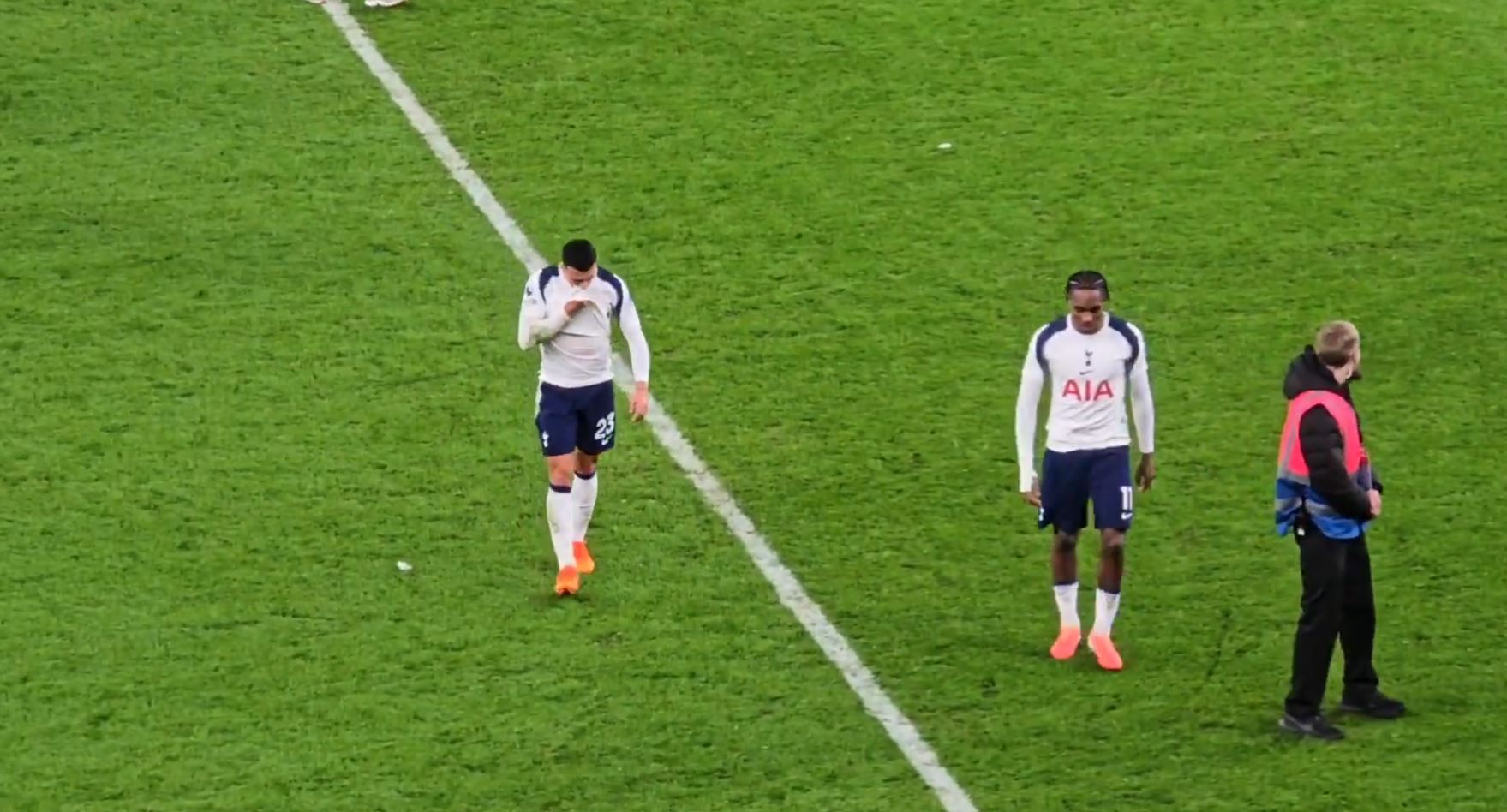 '손흥민에게 꾸중 들었을 텐데' 토트넘 붕괴 직전…팬들에게 박수 보낸 베리발, 그런데 그를 야단 친 페드로 포로→팀이 무너졌다