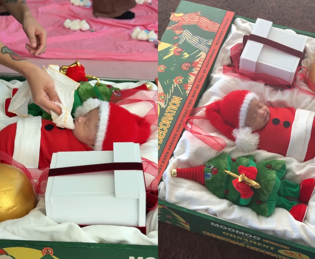 공개된 영상 속 이시영의 딸은 크리스마스 선물 상자에 트리 인형, 트리 오너먼트 등 귀여운 소품들 사이에 산타 옷으로 쌓여있어 눈길을 끈다.