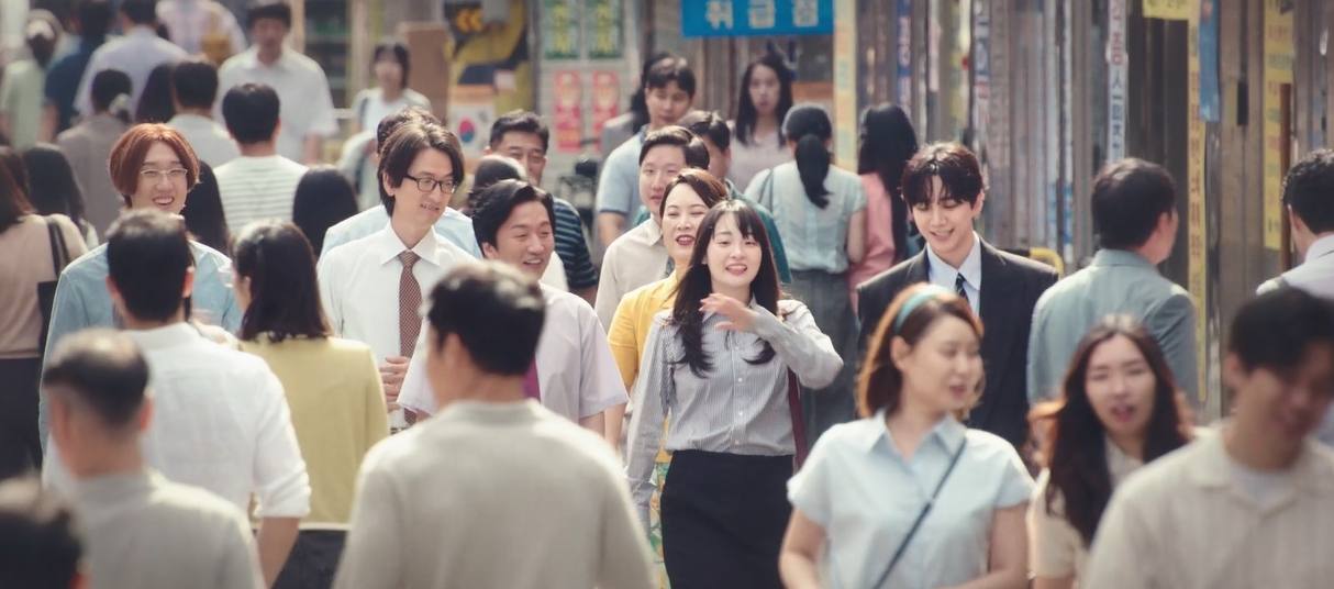 ‘태풍상사’가 담아낸 90년대는 단순한 복고적 재현이 아니라, 그 시대를 살아낸 사람들의 온기와 낭만을 그대로 옮겨오는 작업에 가까웠다. 당시의 공간을 그저 배경이 아닌 사람들의 삶이 오갔던 현장처럼 구현하기 위해 1997~8년의 서울과 부산을 미술로 정교하게 작업하는데 매진했다. 그 결과 출퇴근 시간마다 붐볐던 1호선과 을지로, 수출과 달러가 한곳에 모여 생동감을 자아낸 부산, 태풍과 미선이 살던 달동네 등 사람과 풍경이 어우러진 ‘살아 있는 90년대’가 드라마 속에 생생히 되살아났다. 또한 스쳐 지나가는 장면에서도 그 시대 공동체의 숨결을 살리고자 했다. 동네에 다니는 아이, 할머니, 강아지까지 화면 안에 자연스럽게 담아내며, 당시 골목이 지녔던 활기와 따뜻함을 그대로 담아냈다.