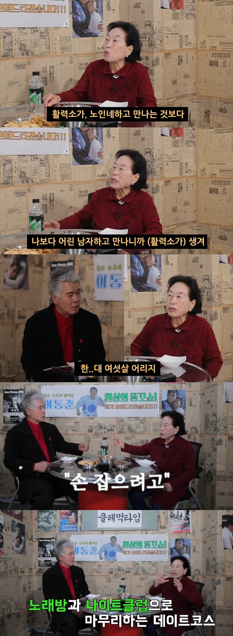 "나보다 대여섯살 정도 어리다"며 80세 정도라는 남자친구를 공개한 그는 "산에도 올라간다. 손 잡으려고. 여기 좀 잡아달라고 해서 (손을) 잡고 안 놔준다. 그 사람은 손을 빼려고 애쓰는데 난 꽉 잡고 안 놔준다. 노래방도 가고 나이트 클럽도 가서 흔든다"며 데이트 일상을 공개했다.
