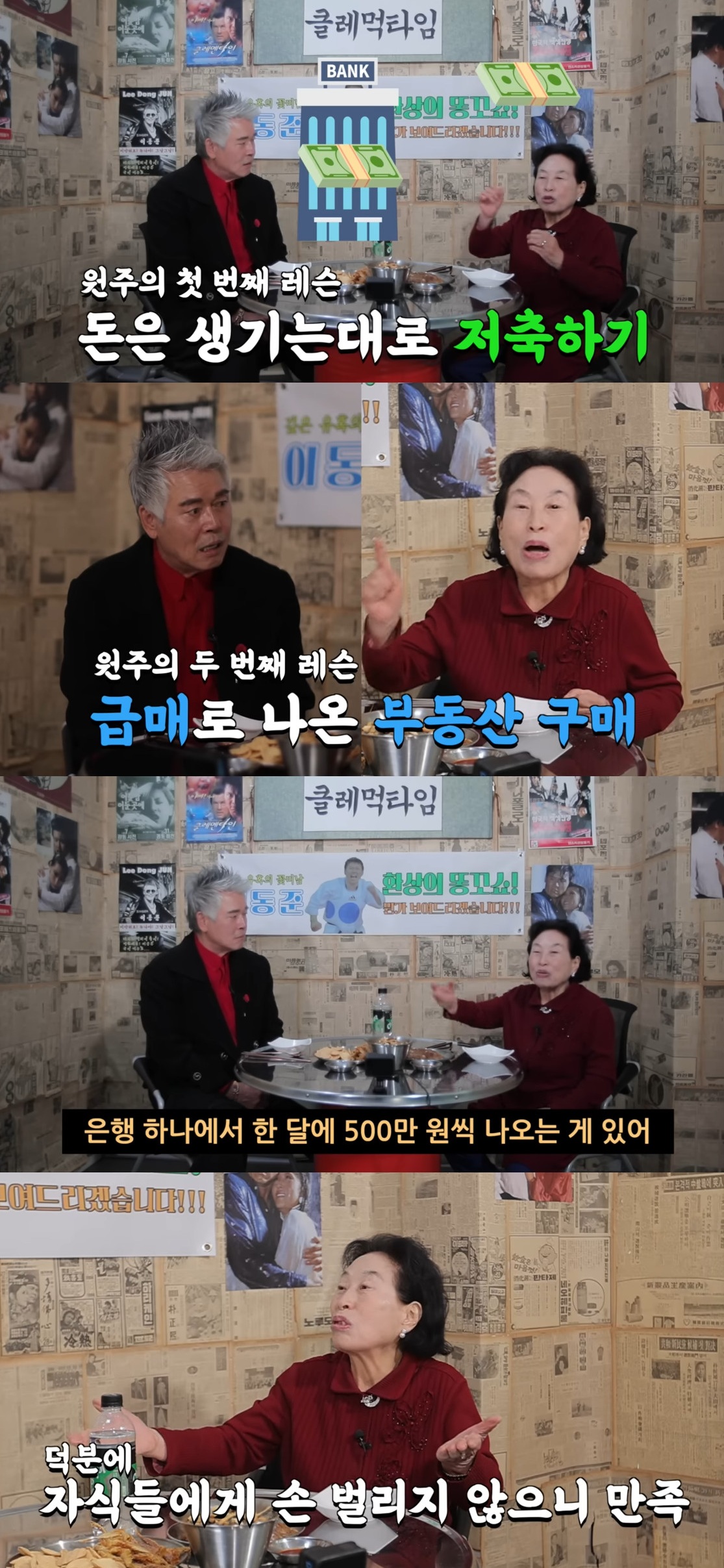 전원주는 은행 재테그에 대해서도 전했다. 그는 "쓰는 재미보다 모으는 재미를 가져라. 티끌 모아 태산이다를 목표로 삼아서 돈을 쥐는대로 은행에 갔다. 그리고 급매로 나온 부동산을 샀다"며 돈을 모은 비법을 전했다.
