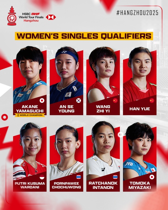세계 1위 안세영은 한국에서 유일하게 여자 단식 파이널에 진출했다. 세계선수권 우승자 야마구치 아카네(일본)를 비롯해 왕즈이, 한웨(이상 중국), 푸트리 쿠수마 와르다니(인도네시아), 폼파위총추웡, 랏차녹 인타논(이상 태국), 그리고 미야자키 도모카(일본)가 파이널에 진출해 안세영과 겨룬다.