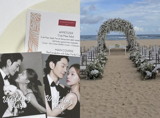 이 밖에도 두 사람은 반려견과 함께한 웨딩 촬영부터, 블랙 슈트에 드레스를 입고 서로를 바라보는 모습 등이 담긴 청첩장이 공개돼 훈훈함을 더했다.