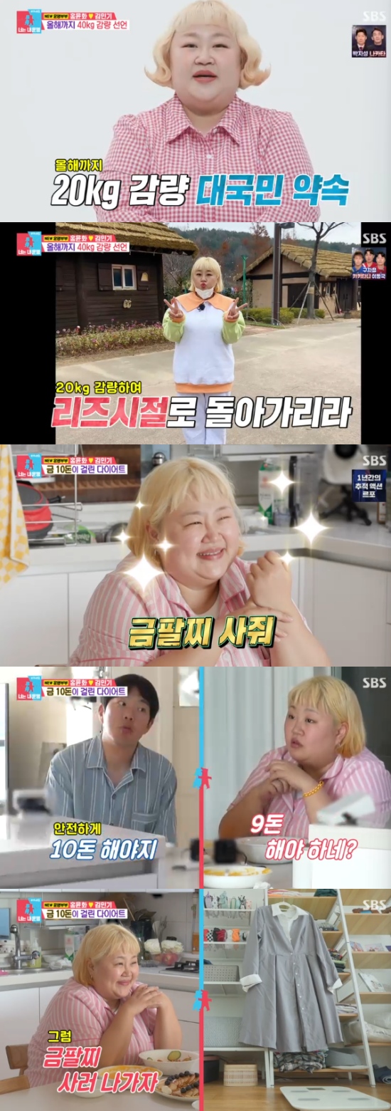 이날 방송에서 홍윤화는 "제 인생에서의 마지막 다이어트를 결심했다"면서 40kg을 감량하겠다고 선언했다. 자다가 숨 쉬기가 힘들어서 깰 정도였다고.
