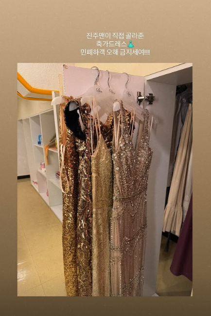 이후 민경아는 해당 게시물을 삭제한 뒤 "진주맨이 직접 골라준 축가 드레스. 민폐하객 오해 금지"라며 해명에 나섰다. 화려한 축가 의상이 신부 박진주가 골라준 것이었다는 설명이다.