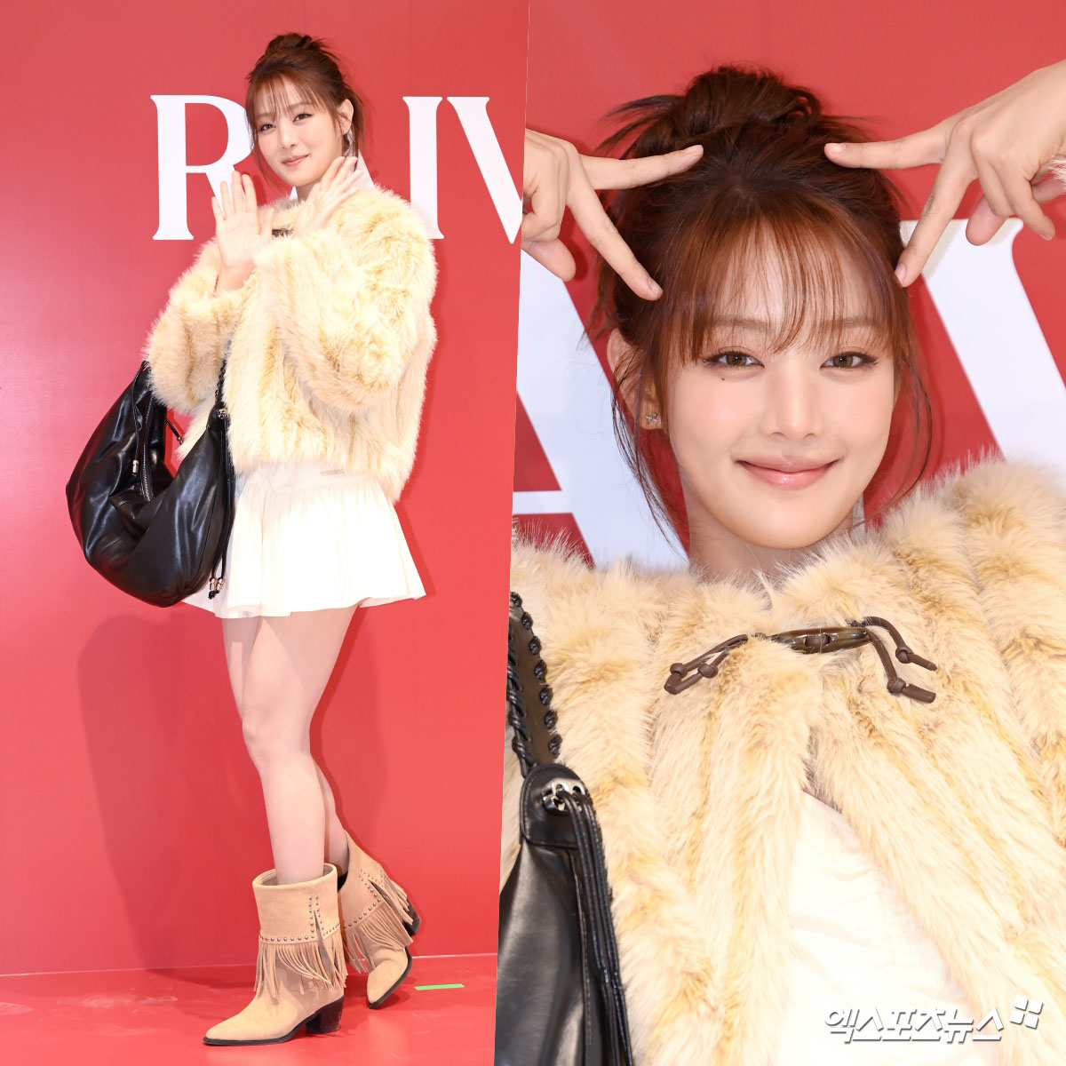 이날 민니는 포근한 질감의 베이지 퍼 재킷으로 따뜻한 계절감을 더하면서도, 미니 기장의 스커트로 특유의 발랄한 매력을 강조했다. 여기에 자연스럽게 흐르는 블랙 숄더백을 매치해 시크한 감성까지 더하며 룩의 균형을 완성시켰다. 특히 프린지 장식의 부츠는 그녀가 가진 보헤미안 무드를 극대화하며 시선을 사로잡았다.
