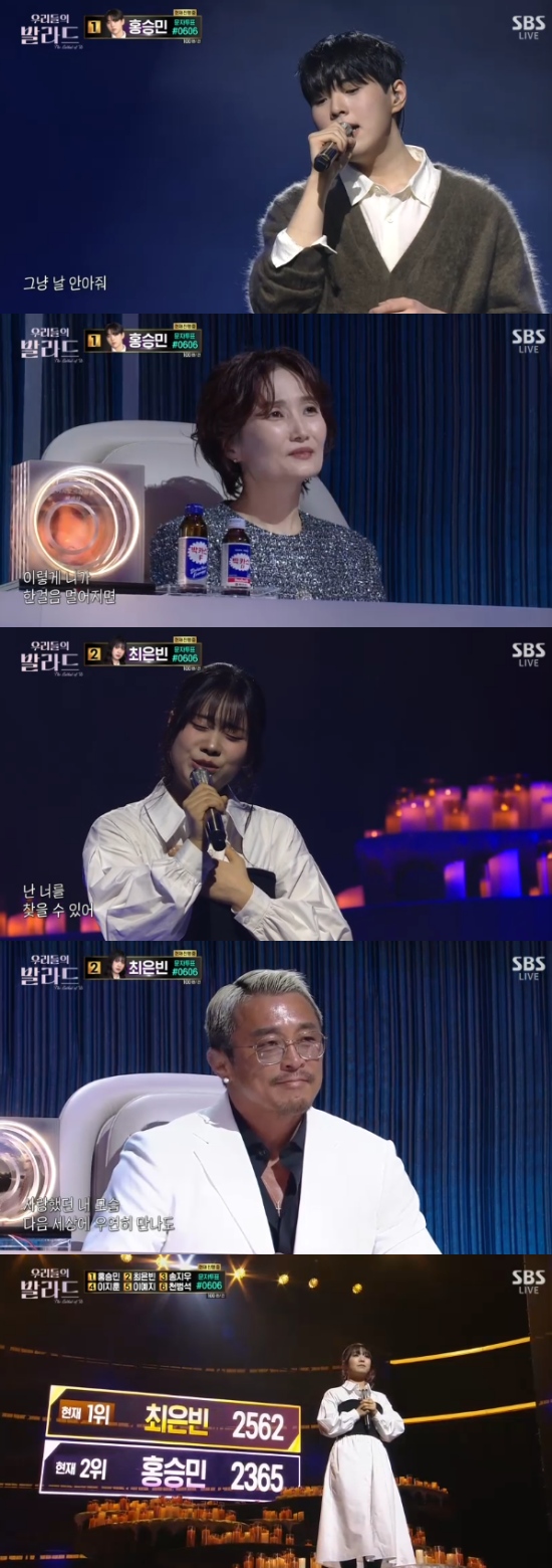 2일 생방송으로 진행된 SBS 예능 프로그램 '우리들의 발라드'에서는 TOP 6 이지훈, 홍승민, 송지우, 천범석, 이예지, 최은빈의 마지막 무대가 공개됐다.