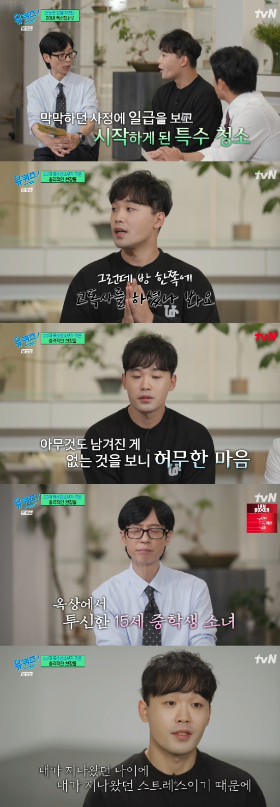 (엑스포츠뉴스 오수정 기자) '유퀴즈'에서 20대 특수청소부 엄우빈이 잊을 수 없는 현장을 회상했다.