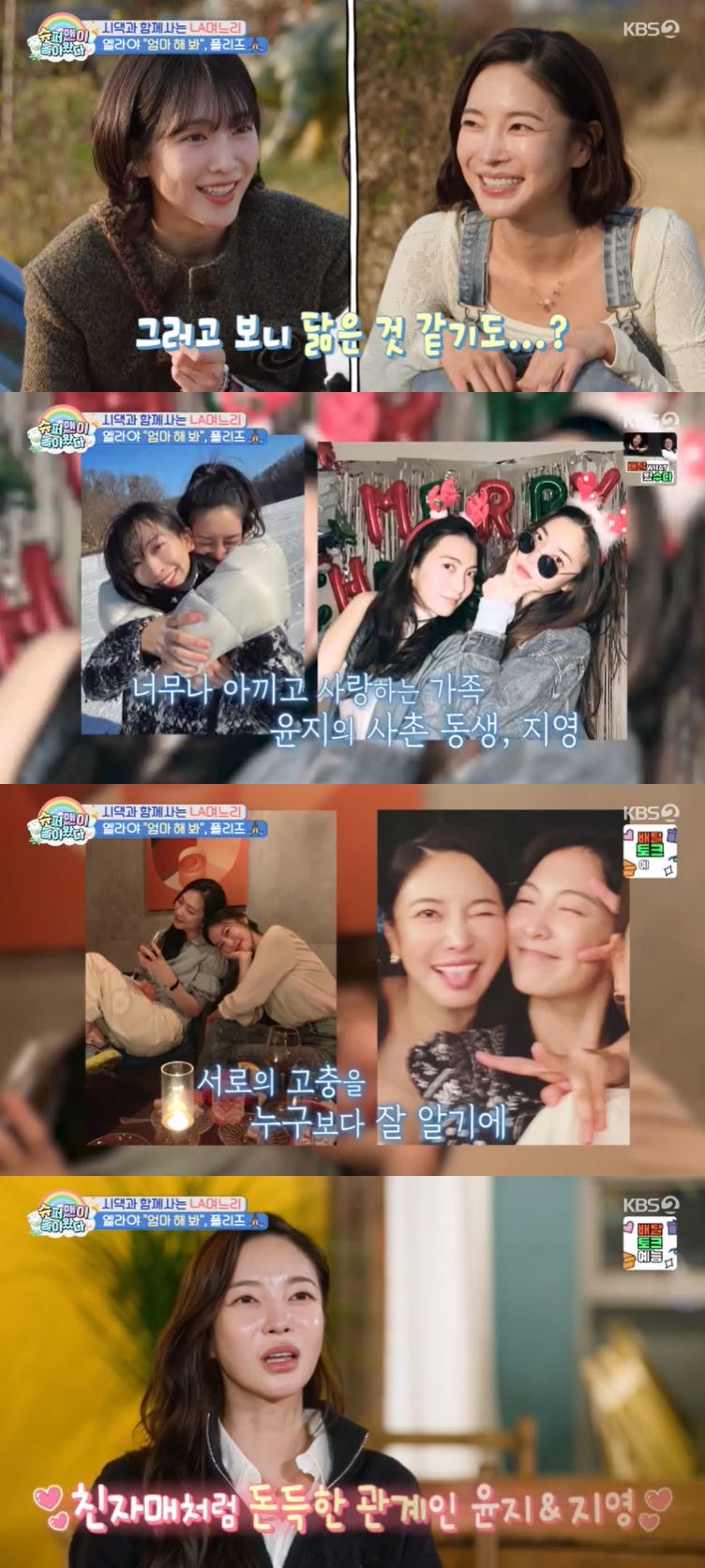3일 방송된 KBS 2TV '슈퍼맨이 돌아왔다'(이하 '슈돌')에는 카라의 강지영이 등장해 김윤지의 육아를 도왔다. 강지영은 "윤지 언니의 사촌 동생이자 엘라의 이모"라고 자신을 소개해 눈길을 끌었다.