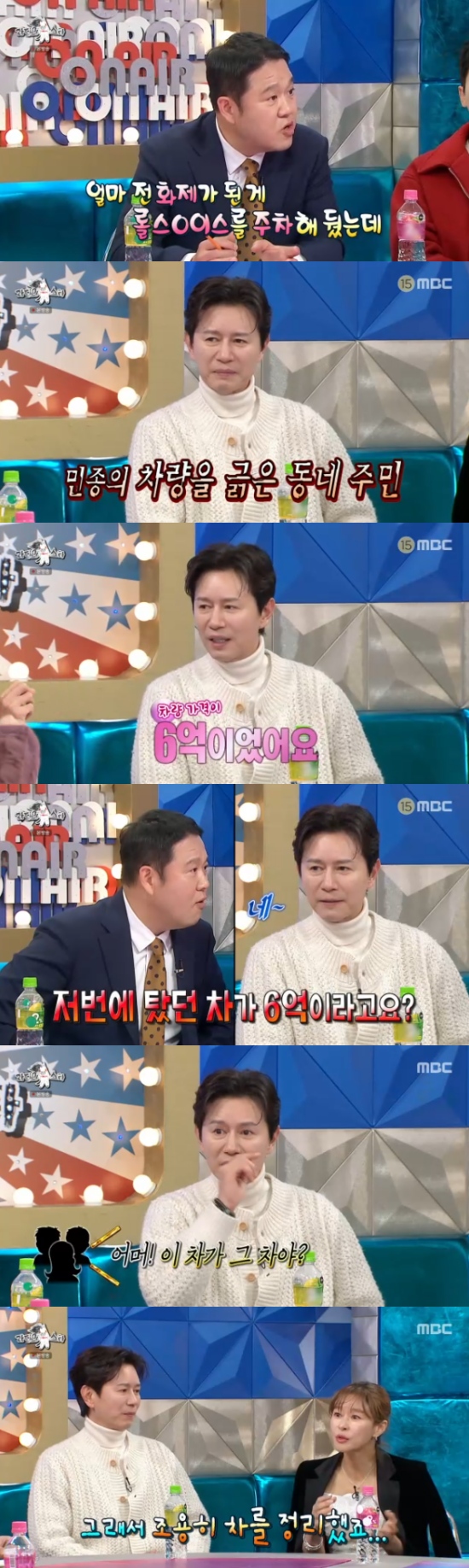 그리고 김민종의 찐친 김구라는 "미담 자판기 아니냐. 롤스로이스를 주차 해놨는데, 아파트 주민이 민종이 차를 긁었는데, 수리비를 받지 않고 그낭 넘어갔다고"라면서 말했다.