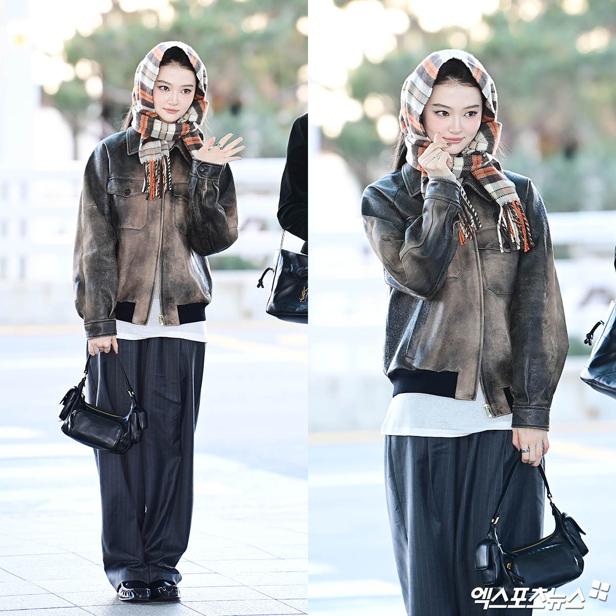 (엑스포츠뉴스 인천공항, 박지영 기자) 그룹 미야오(MEOVV) 엘라가 러블리한 머플러 스타일링으로 귀여운 막내 매력을 뽐냈다.
