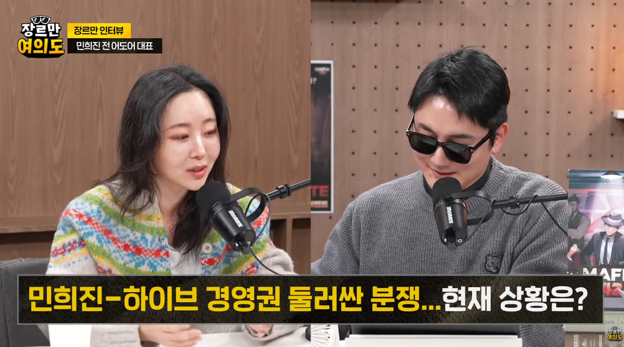 4일  유튜브 '장르만 여의도'는 라이브 방송을 진행했다. 이날 민희진은 '장르만 인터뷰' 코너에 출연해 하이브와의 풋옵션 청구 소송 관련 심경을 전했다.