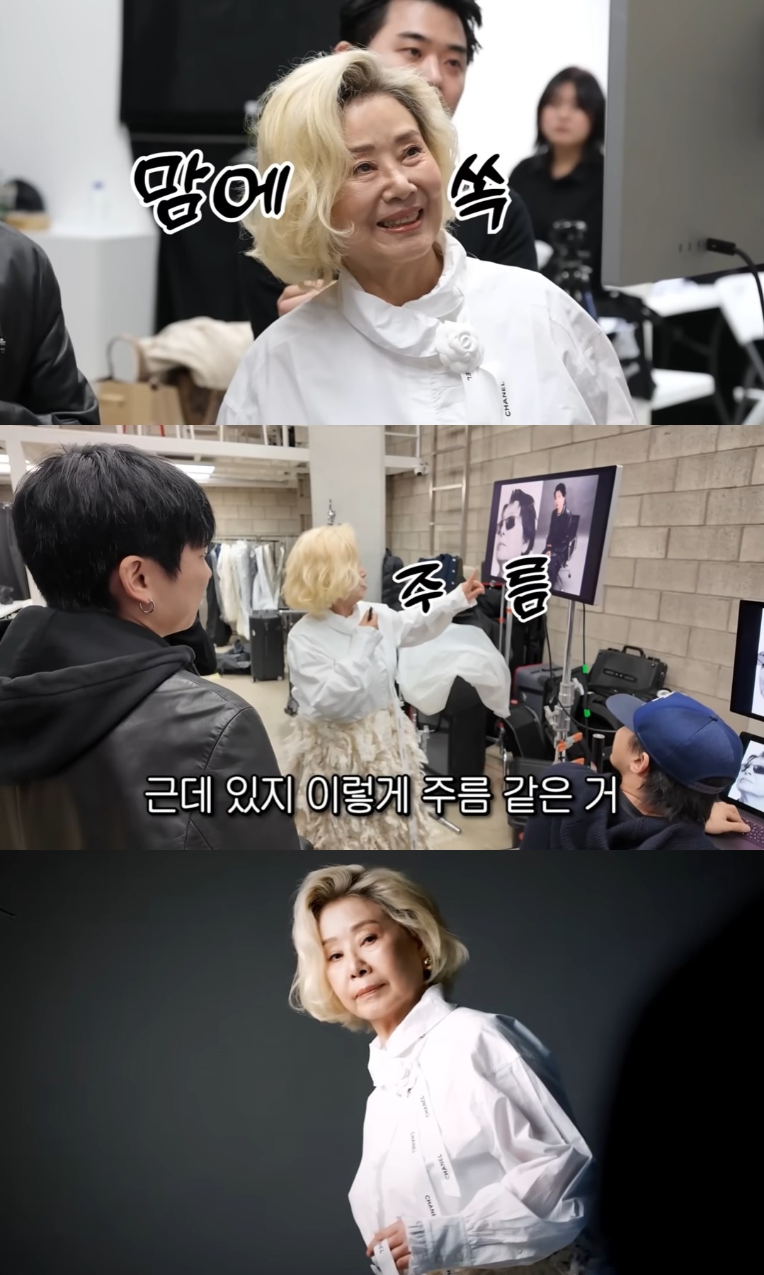 A컷을 확인한 그는 마음에 쏙 든다는 표정으로 "이렇게도 변할 수 있네"라며 흡족해했다. 스태프들 역시 "멋있다"며 감탄을 쏟아냈다. 이어 선우용여는 "이런 주름 같은 건 없애줄 수 있냐"고 물어 웃음을 자아내기도 했다.