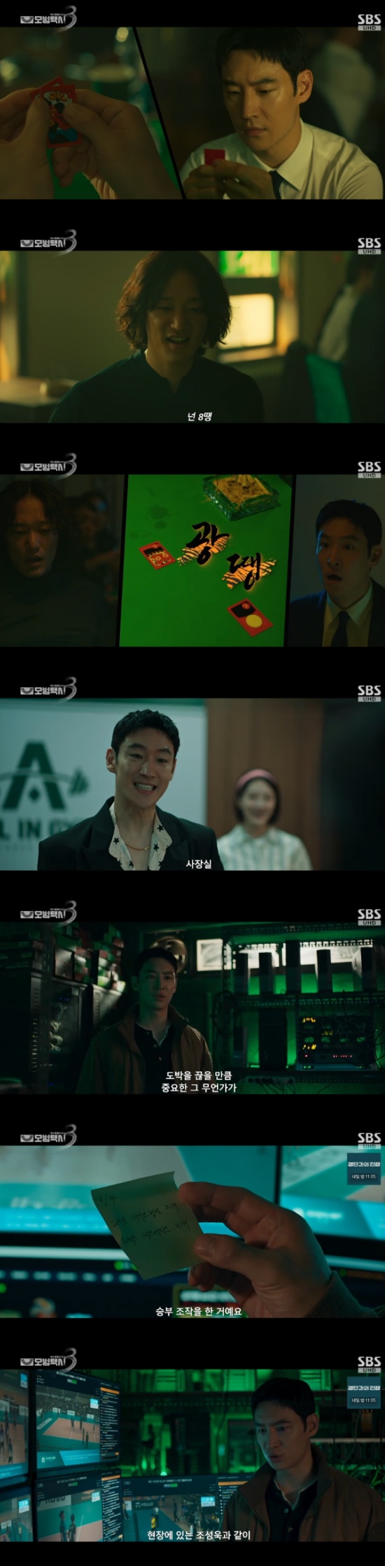 그리고 설치 해놓은 카메라를 통해 임동현이 사장실 안 비밀공간으로 들어가는 것을 확인했다. 김도기는 임동현은 조성욱과 함께 승부조작을 하고 있었음을 알아내 긴장감을 높였다.