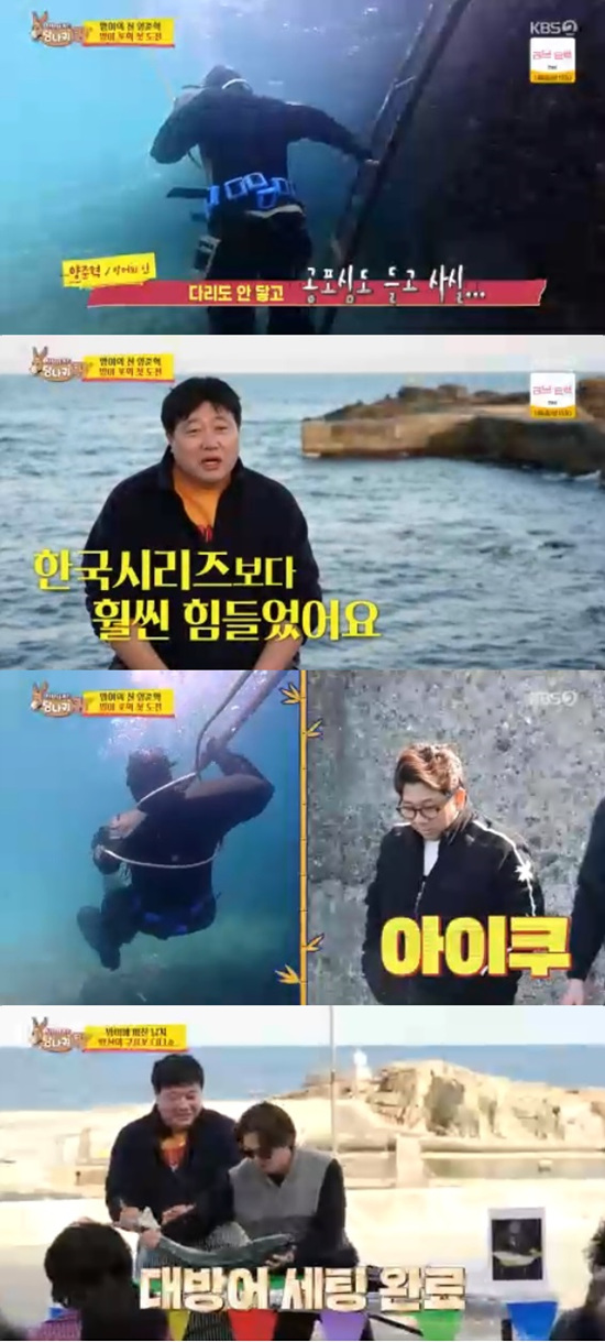 양준혁은 막대기를 붙잡고 다시 잠수를 시도했지만 물속에서 몸이 계속 돌아 애를 먹었다. 양준혁은 바다의 강한 물살 때문에 몸이 돌았던 것이라고 했다.