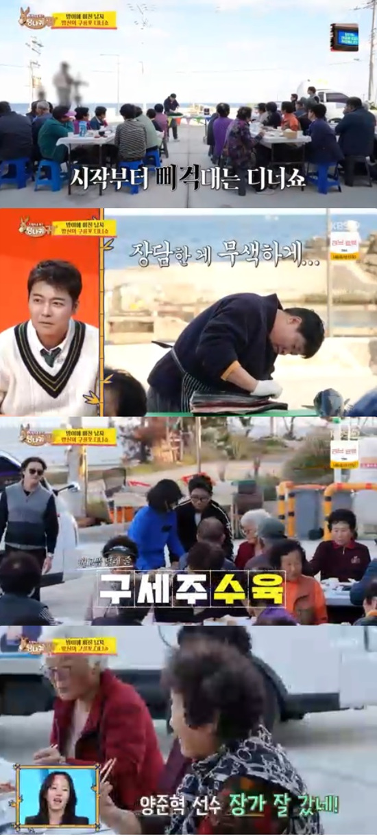 7일 방송된 KBS 2TV '사장님 귀는 당나귀 귀'에서는 양준혁이 구룡포 주민들을 위해 디너쇼를 여는 모습이 전파를 탔다.