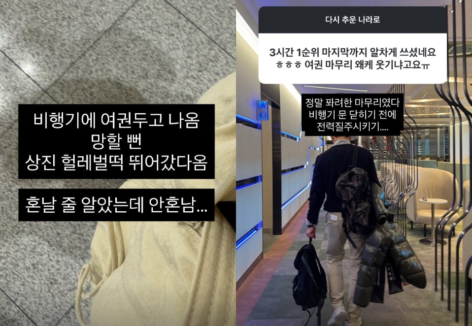 7일 아나운서 출신 방송인 김소영은 자신의 계정에 "비행기에 여권 두고 나옴. 망할 뻔"이라며 아찔한 근황을 전했다.
