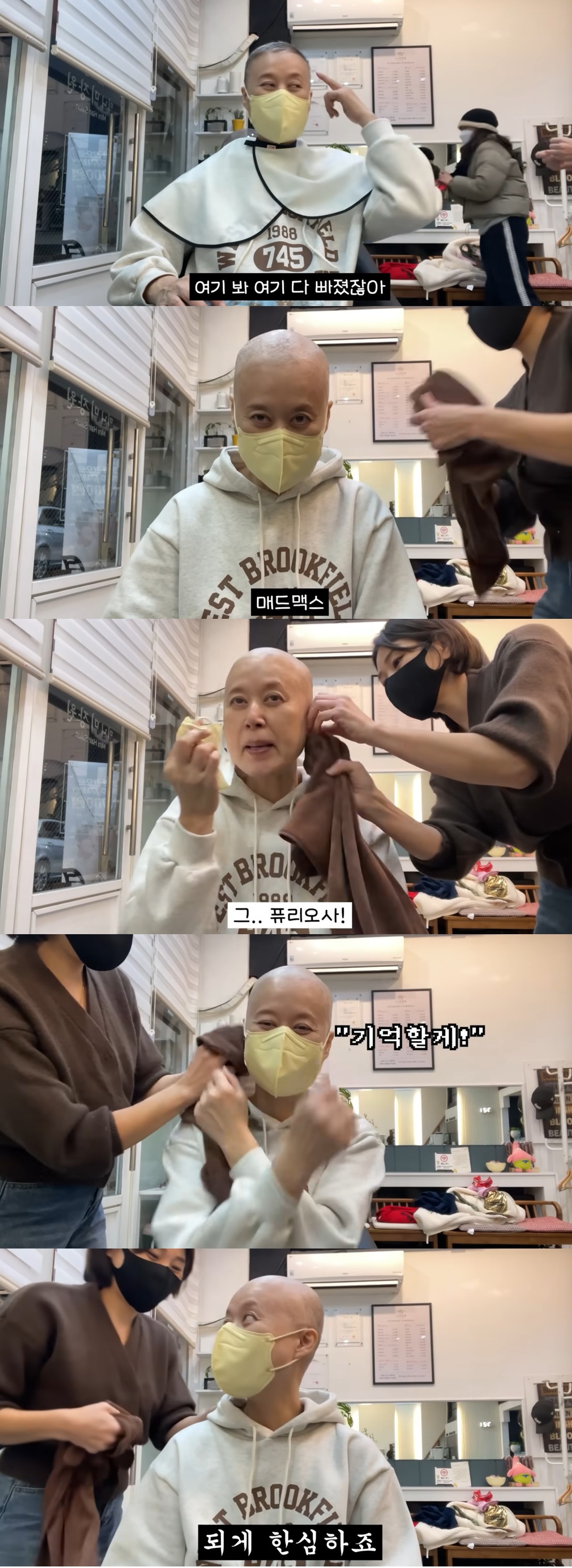 박미선은 "드디어 싹 다 (밀었다)"며 삭발 후 브이 표시를 해보였고, 딸은 "'매드맥스' 같다. 퓨리오사 같다"며 유쾌하게 이야기했다.
