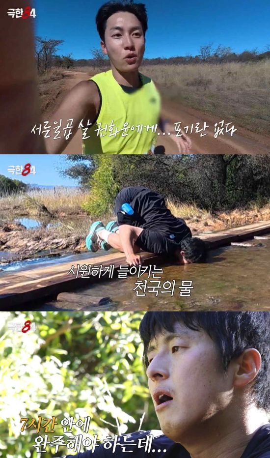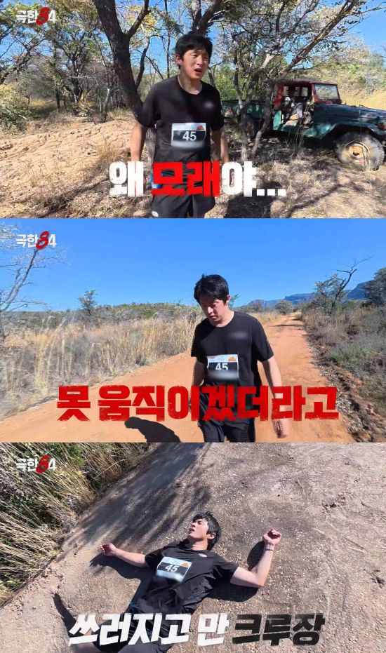 엎친 데 덮친 격으로 13km 구간을 넘어서자 극한의 모래 코스가 등장했다. 모래에 발목이 계속 꺾여 걷기조차 어려워지자 “차라리 저 코뿔소가 들이받아 줬으면”이라고 말할 만큼 힘든 기색을 드러냈다.