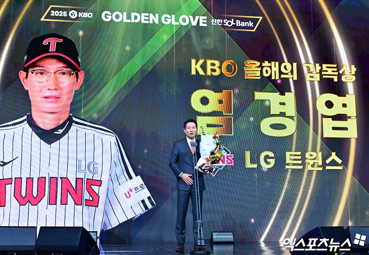 염경엽 감독은 9일 서울 송파구 롯데호텔 월드 크리스탈 볼룸에서 열린 2025 신한 SOL Bank KBO 골든글러브 시상식에서 올해의 감독상을 받았다. 유효표 125표 중 71표(57%)를 획득하면서 김경문 한화 이글스 감독(32표), 이호준 NC 다이노스 감독(15표), 이숭용 SSG 랜더스 감독(5표), 김태형 롯데 자이언츠 감독, 이범호 KIA 타이거즈 감독(이상 1표) 등을 큰 차이로 따돌렸다.