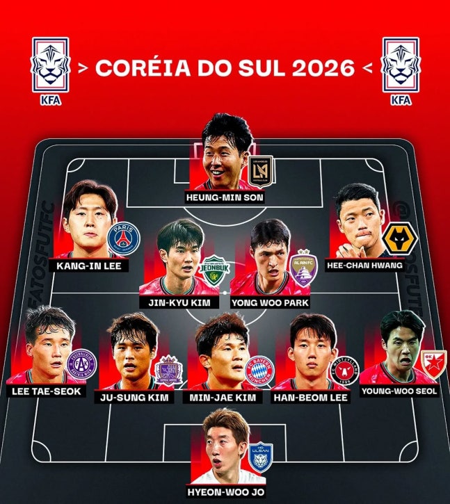 축구 콘텐츠 매체 '풋볼릭'은 9일(한국시간) 아시아 팀들이 내년 2026 국제축구연맹(FIFA) 북중미 월드컵(캐나다·미국·멕시코 공동 개최)에서 사용할 베스트 일레븐을 예상해 공개했다.