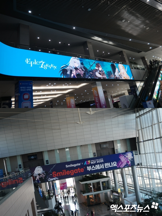 이번 행사의 메인스폰서였던 스마일게이트. 스마일게이트관은 '에픽세븐'과 '미래시: 보이지 않는 미래' 두 개의 IP를 기반으로 구성됐다. 두 작품의 세계관을 공간 연출과 장치물로 구현했으며, 방문객이 쉬어갈 수 있는 '리프레시 존'도 마련했다.