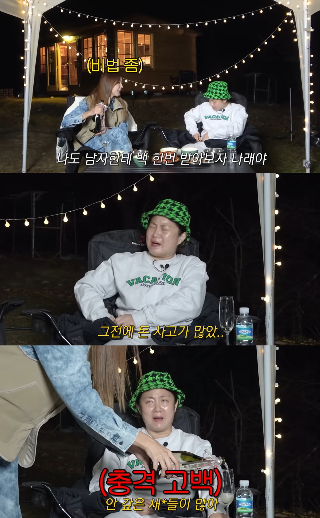 그는 "친하니 여러번 모여 밥 먹고 다같이 친했다. 그런데 (나래) 남자친구가 나래 생일 선물을 살 건데 명품 백을 골라달라고 하더라. 현타가 온다. 나도 남자에게 백 한 번 받아보자"고 한탄했다.