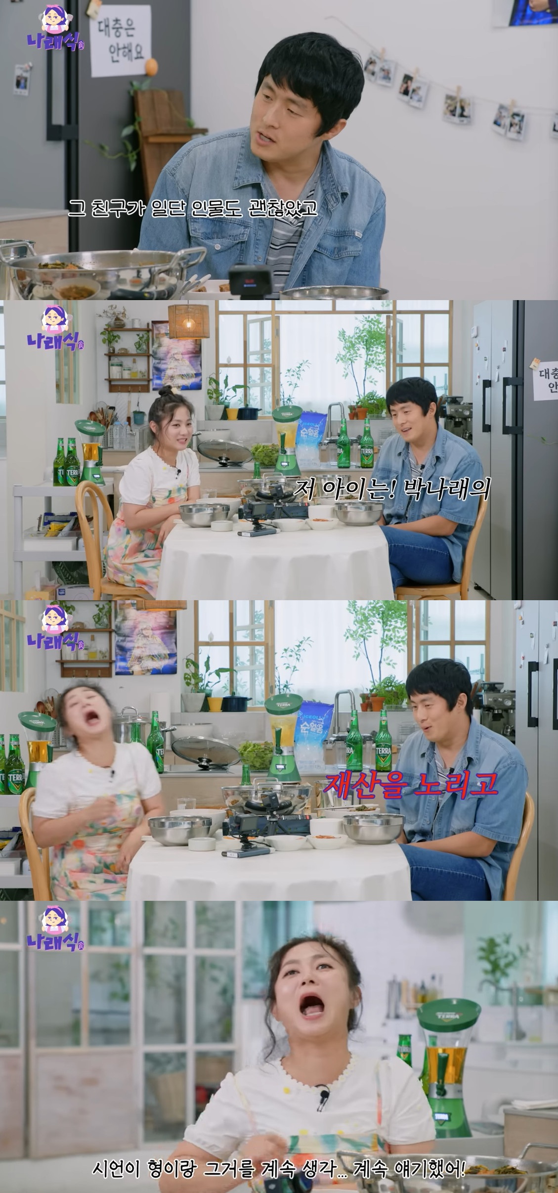 박나래의 전 남자친구 두 명을 자세히 봤다는 그는 "일단 인물도 괜찮았다. 처음에 인물을 보고 의심했다. 저 아이는 박나래 재산을 노리고 온 아이라고 이시언 형과 계속 이야기했다. '도대체 왜 박나래를?' 했다"고도 밝혔다.
