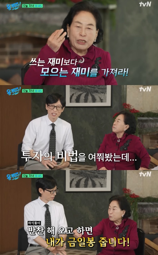 (엑스포츠뉴스 조혜진 기자) '유퀴즈' 전원주가 수익 비결을 밝힌다.