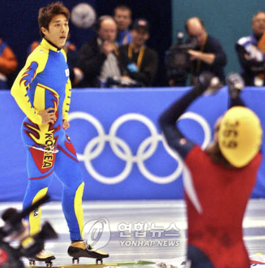 4년 뒤 2002 솔트레이크시티 동계올림픽 남자 1500m 결승에선 결승선을 맨 먼저 통과하고도 아폴로 안톤 오노(미국)를 밀었다는 석연 찮은 판정 때문에 태극기 세리머니를 하고도 페널티를 받아 실격당하는 충격적인 아픔을 겪었다. 당시 온 국민이 분노하며 김동성의 슬품에 공감했다.