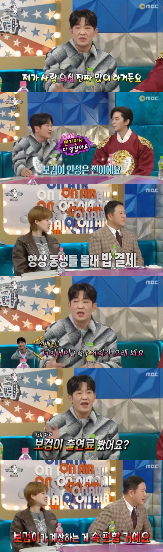 이어 "그런데 보검이 인성은 진짜다. 제가 지나가는 말로 했던 것들도 다 기억을 하고 있더라"고 했다. 그러면서 "제가 보검이 몰래 밥을 계산한 적이 있다. 그걸 알게된 보검이가 저한테 '더치페이를 해야 오래 뵐 수 있어요'라고 하더라"고 전했고, 이를 들은 김구라는 "보검이 출연료 봤어? 보검이도 자기가 사는게 편할거야"라고 돌직구를 달려 웃음을 줬다.