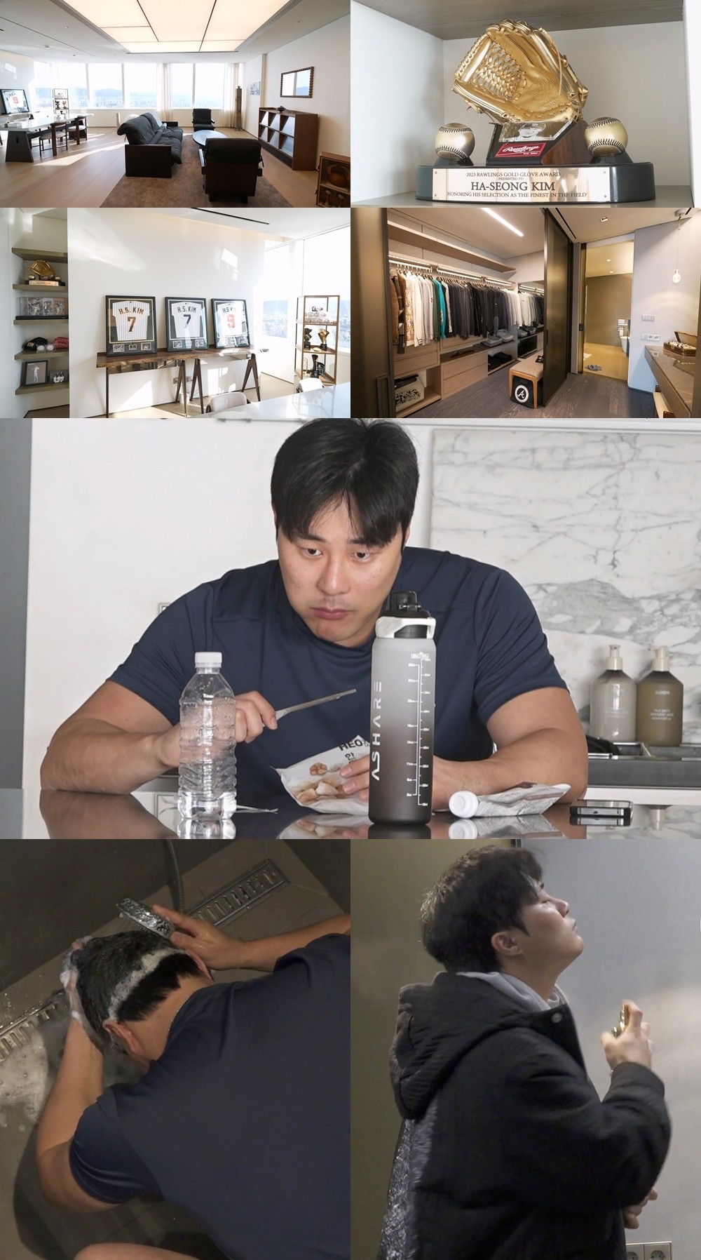 서울 전경이 보이는 통창, 그의 야구 인생이 고스란히 담긴 공간, 주방과 드레스룸까지 ‘칼 각’으로 정리된 모습이 눈길을 사로잡는다. 또한 각종 유니폼과 트로피, 황금빛으로 빛나는 ‘골드 글러브’의 존재감이 돋보인다.