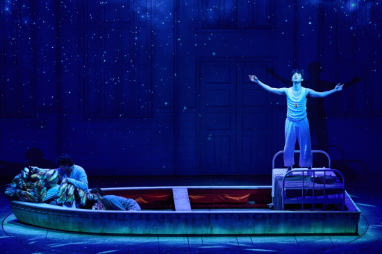 병원과 동물원, 시장, 그리고 작품의 주 배경인 망망대해까지 유기적으로 이어지는 무대 전환이 백미이며 영상 효과는 생생함을 더한다. 무대라는 물리적 한계를 넘어 시각적인 몰입을 극대화한다.