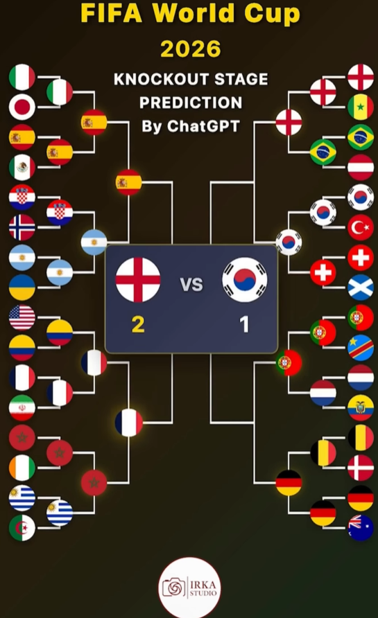 하지만 이 예측 자료에는 치명적인 오류가 있다. 공개된 대진표의 반대편 블록을 보면 스페인과 아르헨티나가 8강에서 만나는 대진이 형성돼 있는데, 실제 월드컵 조 편성 원칙과 토너먼트 대진 구조상 발생하기 불가능한 매치업이다.